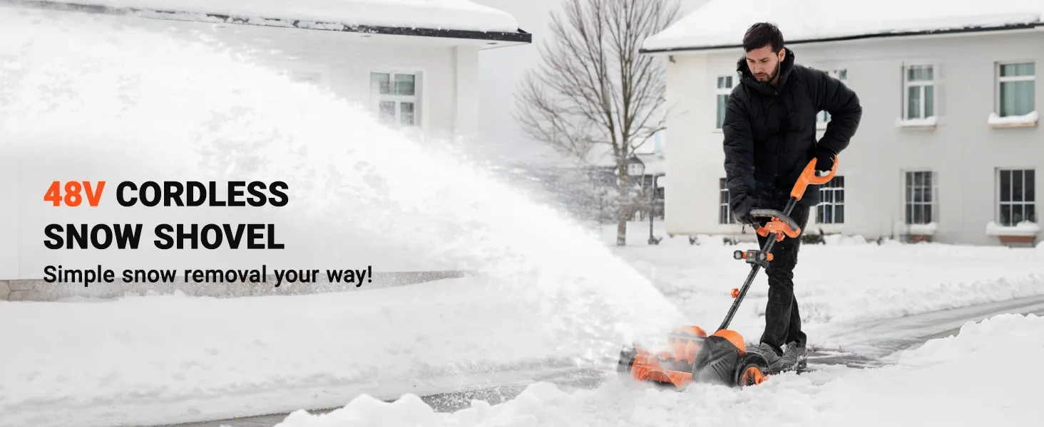 - UNLEASH THE POWER OF WINTER - Experience unmatched efficiency and maneuverability with the cordless snow shovel. Featuring a robust 48V brushless motor and dual 24V rechargeable batteries, enjoy up to 32 minutes of powerful snow clearing with our cordless snow blower. Specially designed snow wheels make handling a breeze!