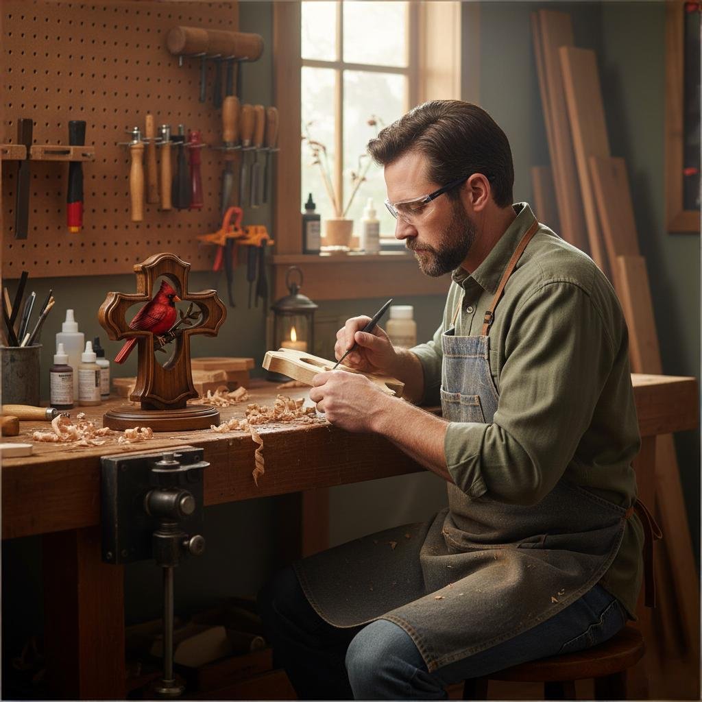 This ornament is not merely an artwork, but a vessel for emotion. Combining the steadfast cross with the spirited cardinal, it brings solace and strength to any home.